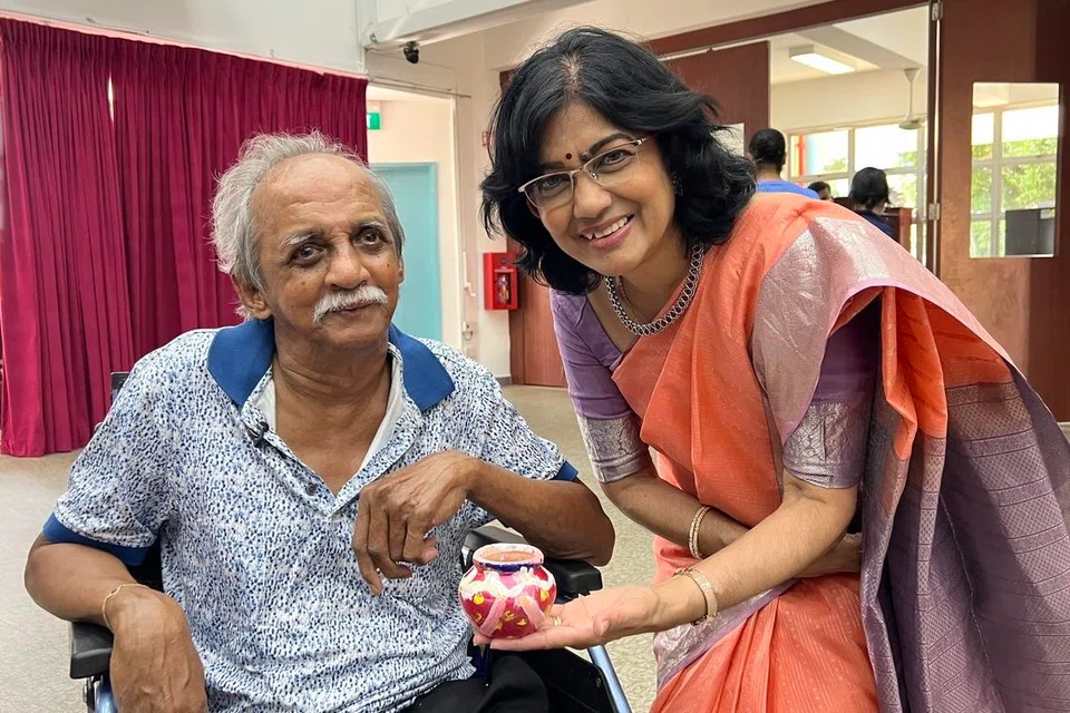 Married couple and SNM residents Rethinam Pillay Ramasamy, 74, and Pospovalli, 68, were happy to celebrate Pongal together, and actively engaged in activities like Pongal pot painting and singing.