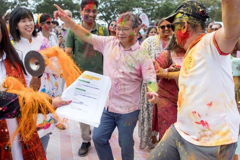 Greeting the crowd amid cheers of “Happy Holi”, Mr Tong said the festival captured the joyful spirit of community celebrations in Singapore.