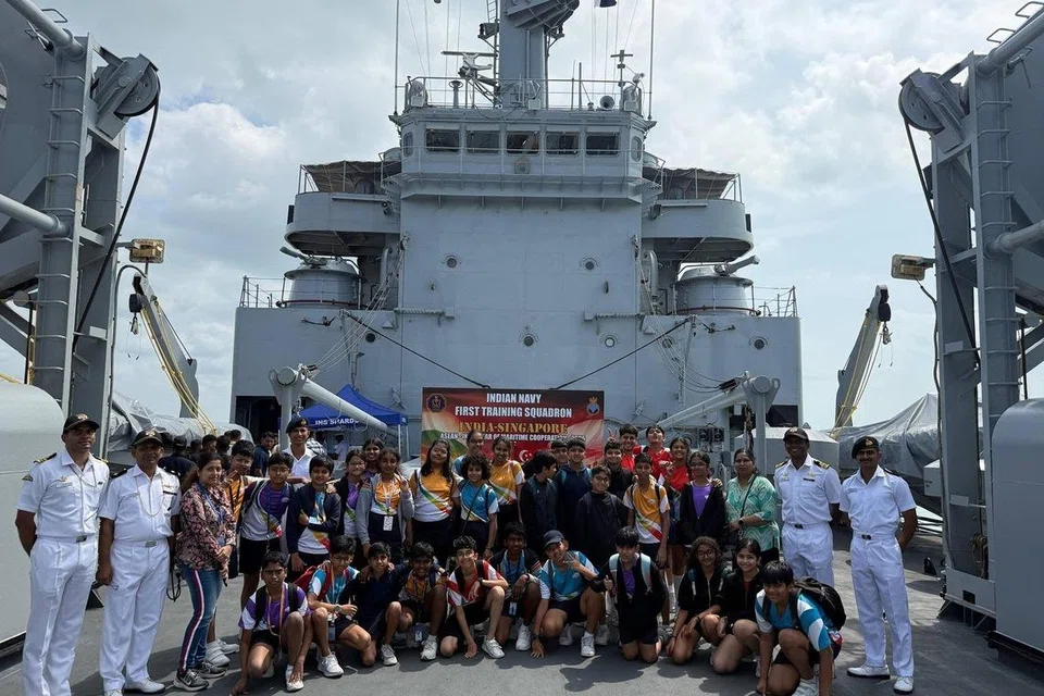 The Singapore port call featured cross-cultural engagements, including musical performances by the Indian Navy Band at Our Tampines Hub and Global Indian International School. A friendly dodgeball match and structured professional exchanges, such as damage control training using RSN simulators, further enriched the visit.