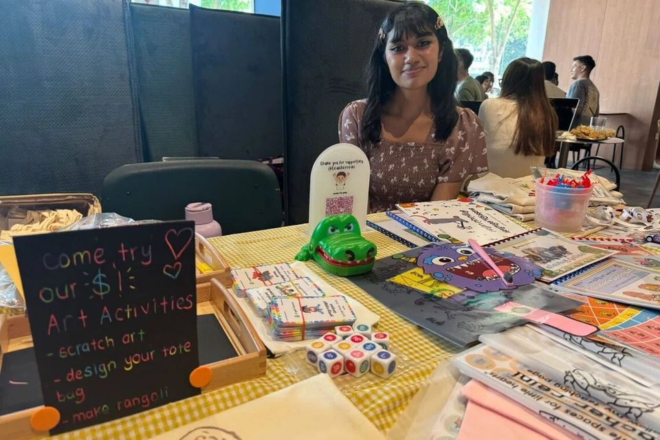 Pop-up bazaars also offer a platform for unconventional businesses, such as Teacher Reini – a brand that creates playful Tamil educational resources. Unable to secure a position as an English preschool teacher, Ms Harreini Jeyaudin, 26, took up an unfilled Tamil teacher role in a preschool to fulfil her post-diploma bond.