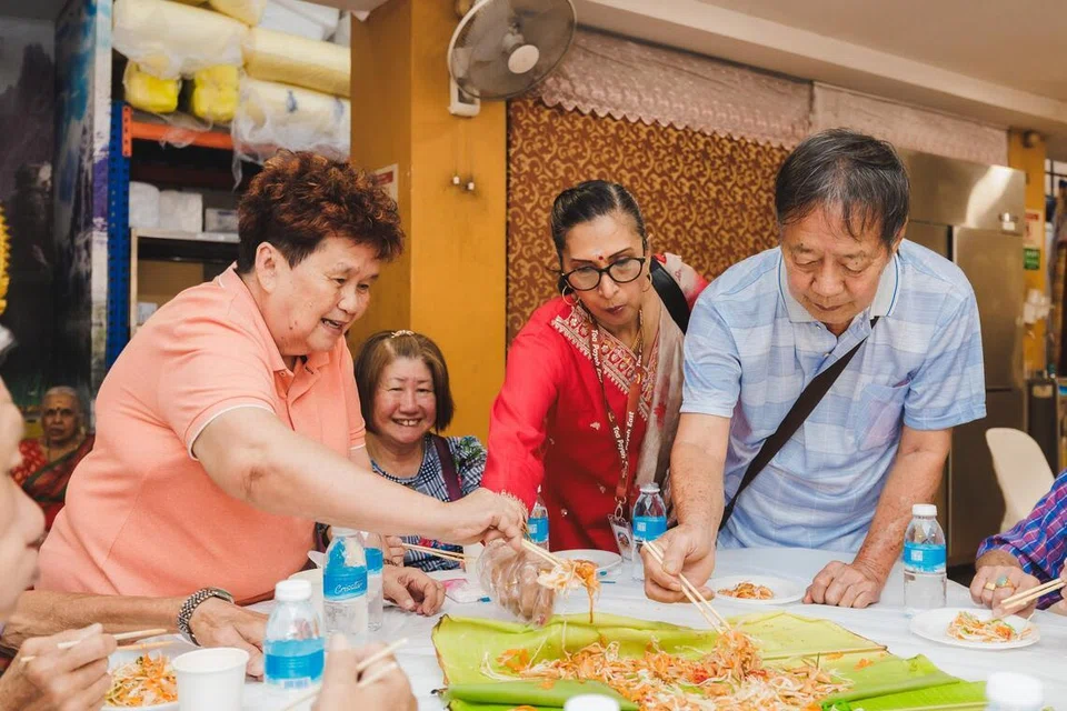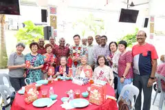 About 80 seniors later attended a Chinese New Year banquet held at the temple hall, including ComCare beneficiaries living in public rental flats. The six-course meal began with the traditional tossing of Yu Sheng, which was served on Indian banana leaves.