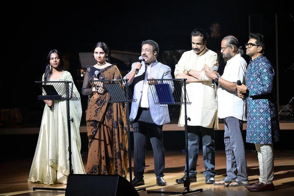 Emcee Jayaraj Warrier noted the evening’s triple milestones: Ouseppachan’s 50th anniversary in music, Singapore’s 60th birthday and the composer’s upcoming 70th birthday.