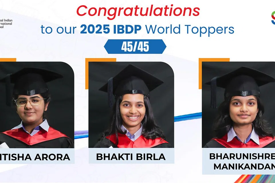 Three students – Jitisha Arora, Bhakti Birla, and Bharunishree Manikandan – achieved the rare feat of scoring a perfect 45 out of 45 points, placing them among the highest achievers worldwide and earning them the title of IB World Toppers.