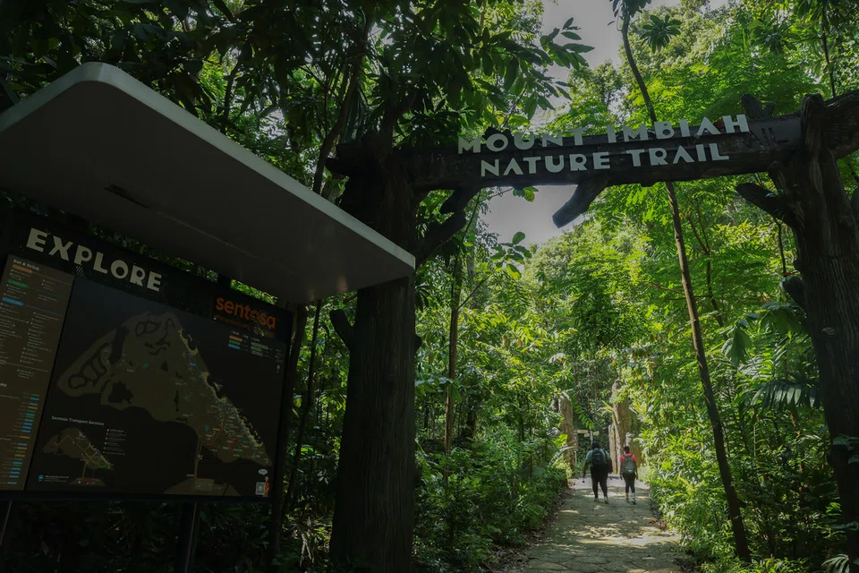 Our trail started with a flat, boarded walkway and ended with us being drenched in sweat, unhelped by Singapore’s heat and humidity, as we climbed down a series of large, uneven steps that led out onto Siloso Road.