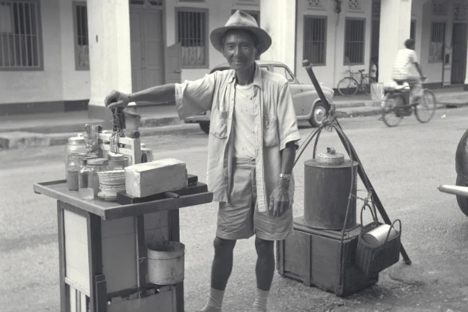 The ice-kacang man, who sold syrup-coated ice balls, was especially popular with children during the school holidays.
