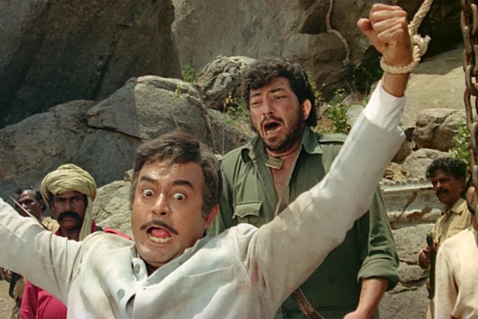 I have friends who can hold court at social gatherings simply by repeating gems from this treasure, such as Gabbar’s interrogation of his cronies (starting with the chilling question “Kitne aadmi they?” (Hindi for “How many men were there?”). And Viru’s drunken monologue threatening suicide from a precarious perch.