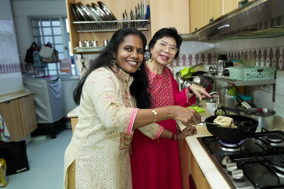 This year, Deepavali was extra special for Mdm Vijayalakshmi Raja, 48, as she had an extra pair of hands to help her prepare murukku – a popular, crunchy, fried Indian snack – particularly enjoyed during the Indian festive period.