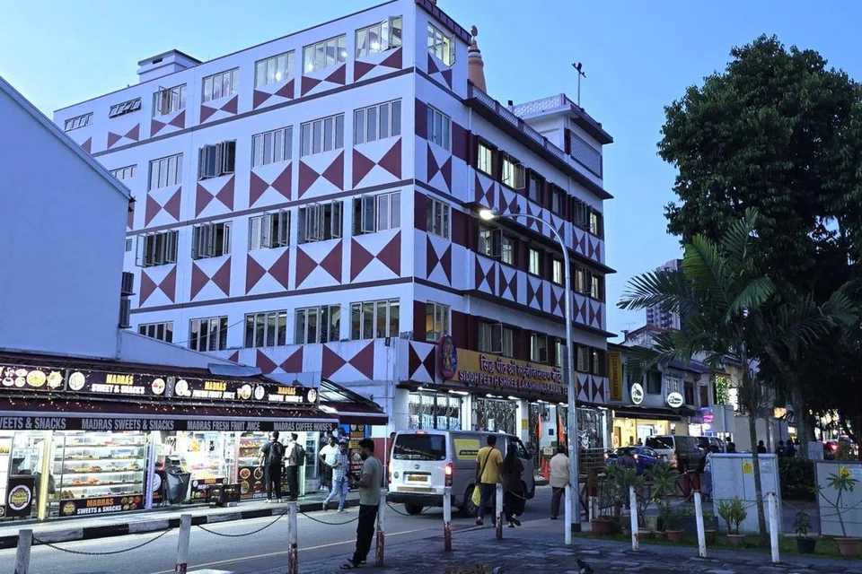 Located in the heart of Little India, the five-storey SLNT building is hard to miss thanks to its distinctive red-and-white triangular patterns on its facade.