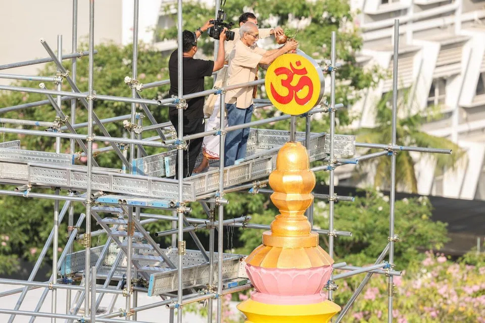 The collected holy water was then poured over the three yellow spires during the consecration ceremony to purify, spiritualise, and energise the temple, noted SLNT president Prof Balram Chowbay.