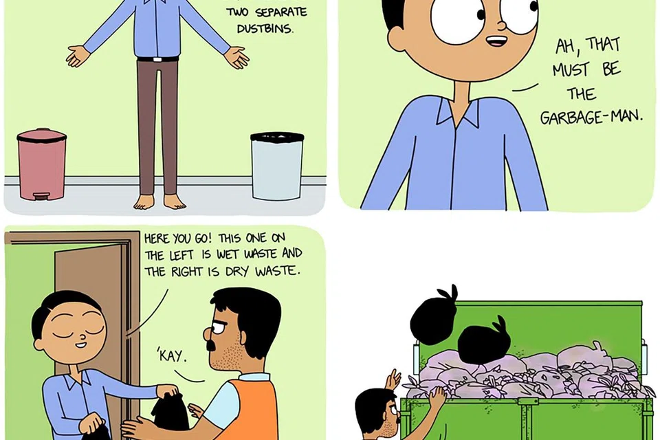 In addition to the humour, the webcomic also acts as a conduit in its exploration of the hypocrisies and ironies perpetuated in Indian society. An example is in the episode titled “Wasted Effort”, where the daily segregation of wet and dry waste is presented as a fruitless endeavour, as the garbage bags are usually thrown together into the same truck.