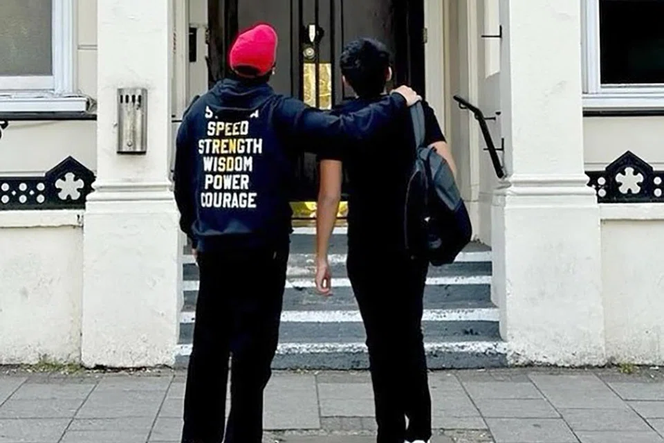 He posted a heartwarming photo of the father-son duo in front of the school, both clad in matching all-black outfits.