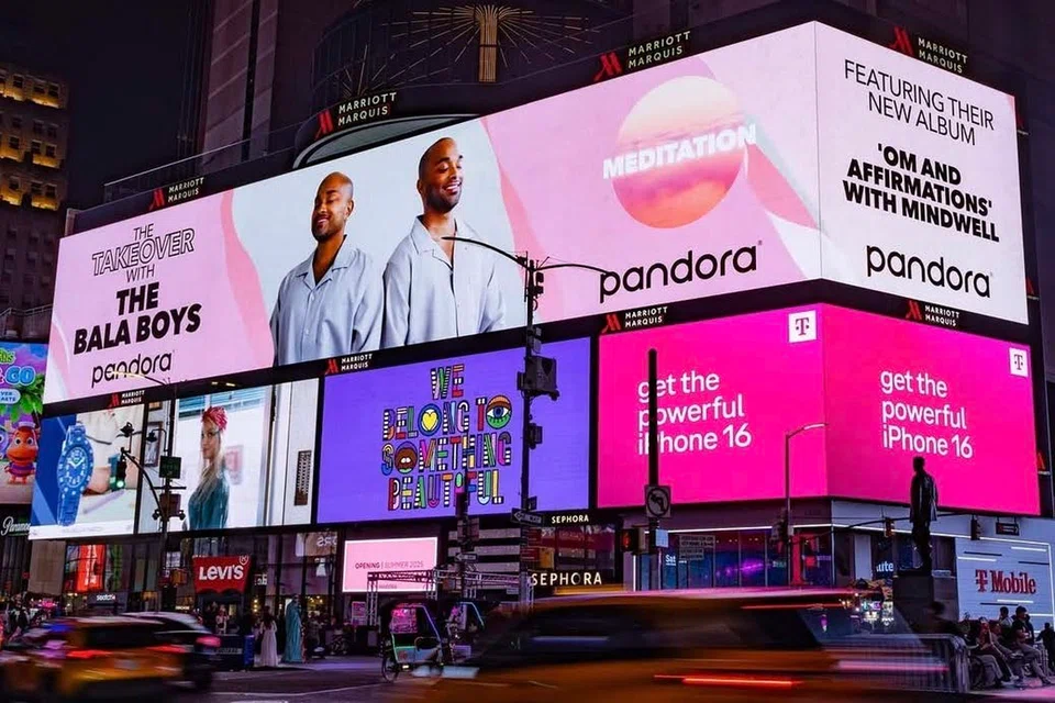 The twin brothers, Ganesh and Sriram Balasubramanian, 28, were featured on a Times Square billboard in New York City from May 16 to 22 for their album Om and Affirmations.
