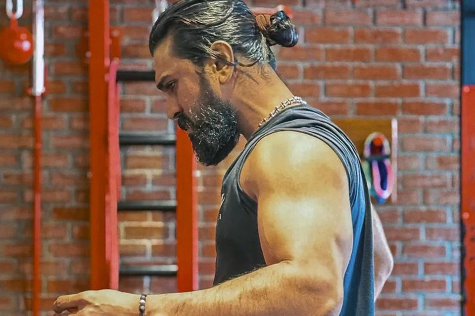 Charan’s photo revealed a rugged look with a heavy beard and his hair tied back in a man bun, with his sculpted biceps prominently displayed.