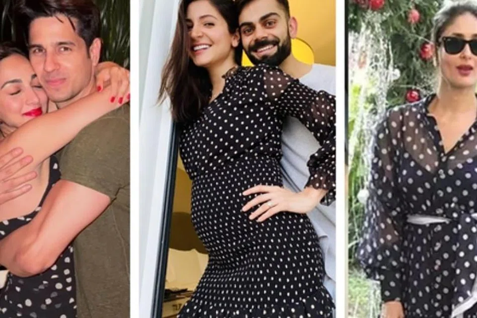Just two months ago, Kiara posted a photo with Sidharth in a stylish polka-dot dress. Anushka Sharma (centre, with Virat Kohli) announced her pregnancy in 2020 wearing a polka-dotted dress, while Kareena Kapoor (right) also opted for a polka-dotted dress as part of her maternity wardrobe.