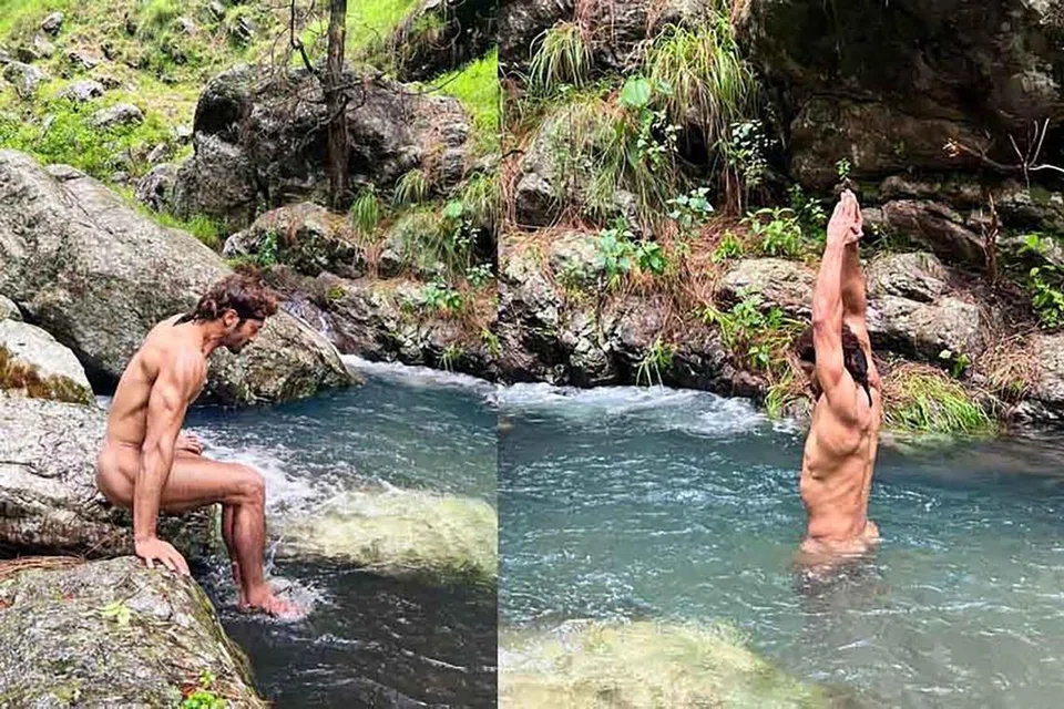 In one photo, he’s seen sitting by the river flaunting his well-chiselled body, while in another he is meditating in the cold water. A third shows him cooking.