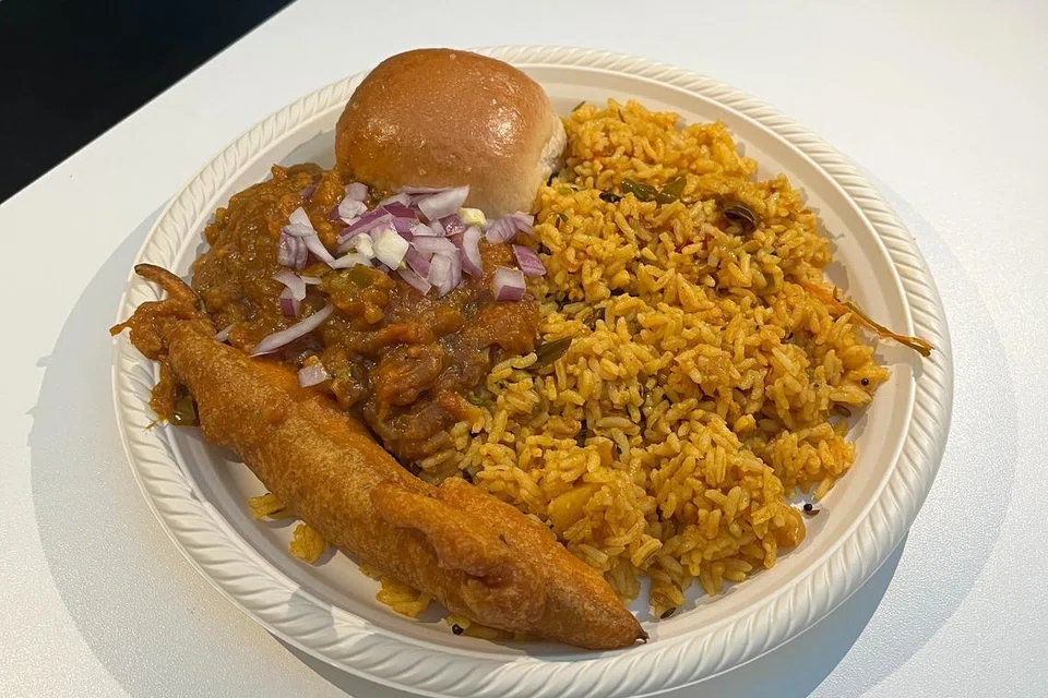 Among the dishes were street food staples such as pav bhaji (a mash-style vegetable curry served with a soft, heavily-buttered bread roll), samosa (a deep-fried pastry filled with spiced potatoes) and mirchi bhajiya (gram flour-battered green chili fritters).