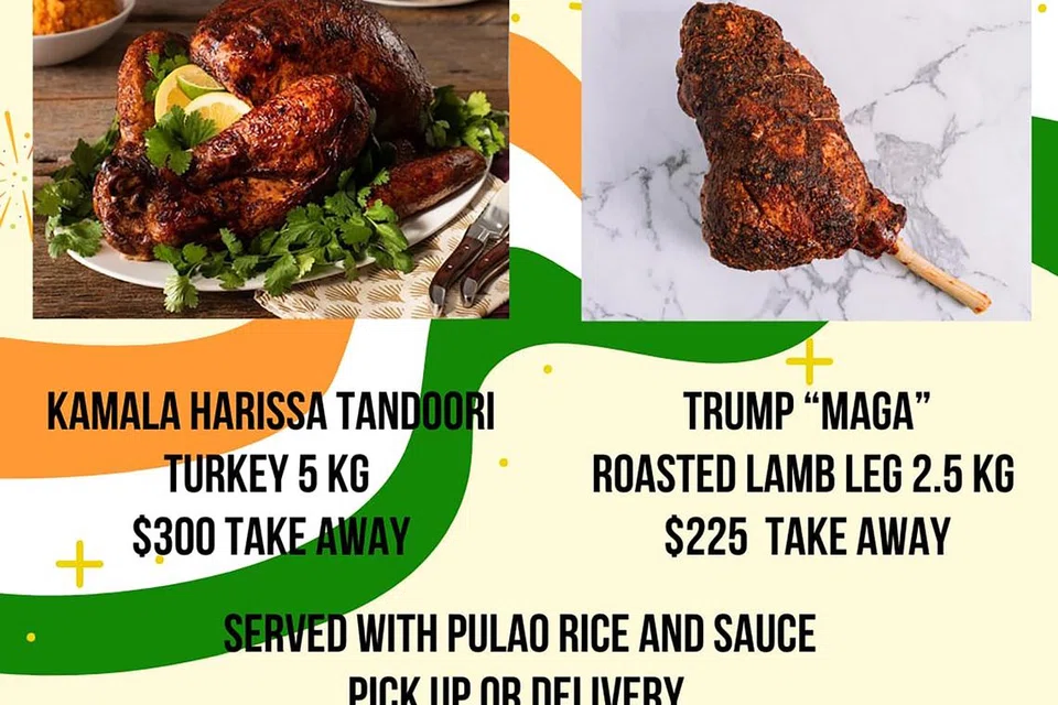 Call 9416650 to place an order for Kamala Harissa Tandoori Turkey or Trump Roasted ‘Maga’ Lamb.