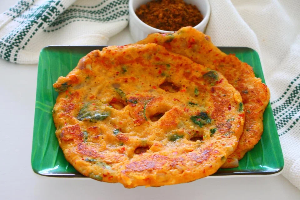 It is a thick, flat, round crepe prepared by grinding dal, rice, spices and onion into a batter and then cooking it on a thosai pan, like when making uttapam.