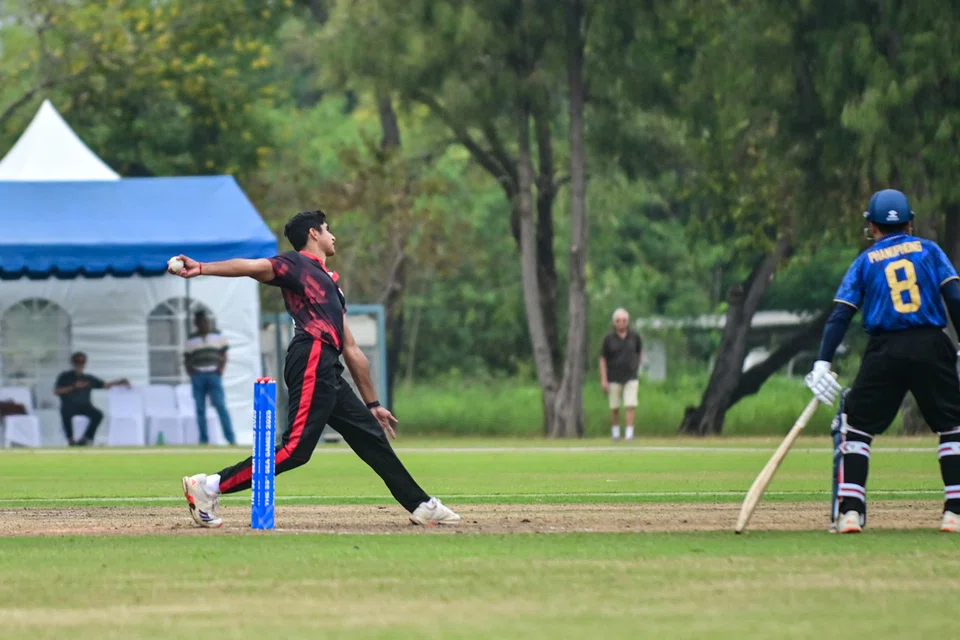 Against Thailand, Singapore won by 4 runs. In the final over, Thai batsman Suttisan was on 73 off 49 and had just hit him for a six. Neil held onto his nerve to get him out next ball. A double-wicket maiden by Kannusami Sathish was also a highlight, with his cutters troubling batsmen on a slower wicket.