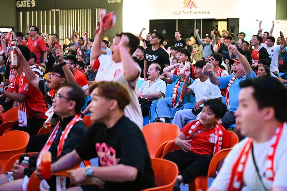 More than 2,600km away, the watch party at Our Tampines Hub exploded in joy, reported The Straits Times. Around 500 fans – families, youths and long-time supporters – roared with every tackle and chance.