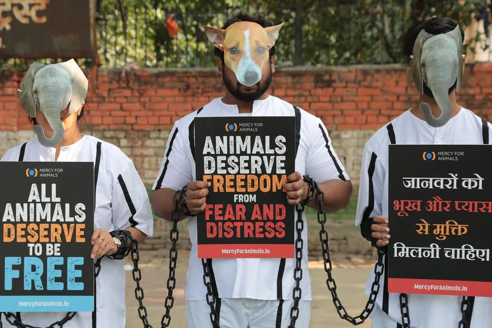 They were highlighting the suffering of thousands of animals on commercial farms in India ahead of International Animal Rights Day (Dec 10).