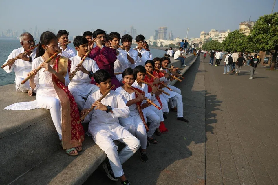 Young flautists, including several students, rehearsed along Mumbai’s Marine Drive on Dec 29 under the guidance of acclaimed bansuri exponent Vivek Sonar, as preparations gathered pace for the 17th edition of the Annual Bansuri Utsav in Thane, Maharashtra.