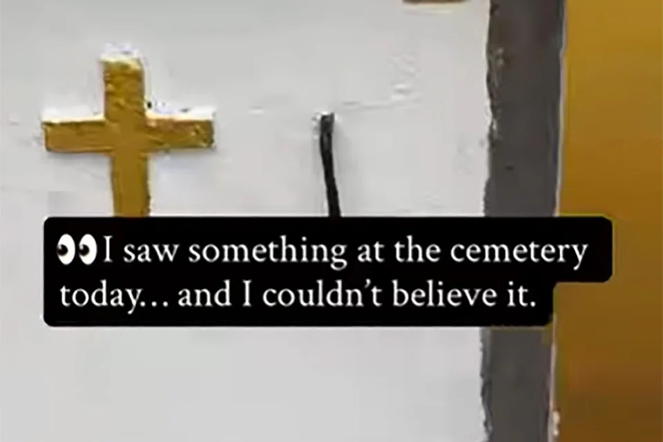 “I saw something at the cemetery today… and I couldn’t believe it,” reads the overlaying text.