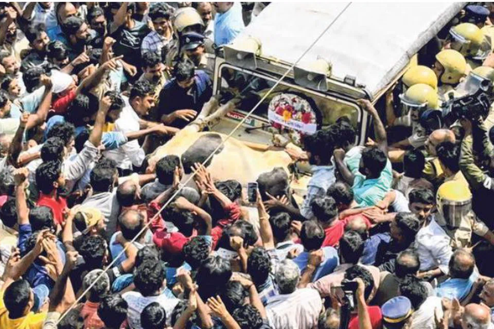 Thousands of people blocked roads in the town on Feb 17 and vandalised a vehicle belonging to the forest department to protest against the incident, with police resorting to baton charging to disperse the crowd, reports said.