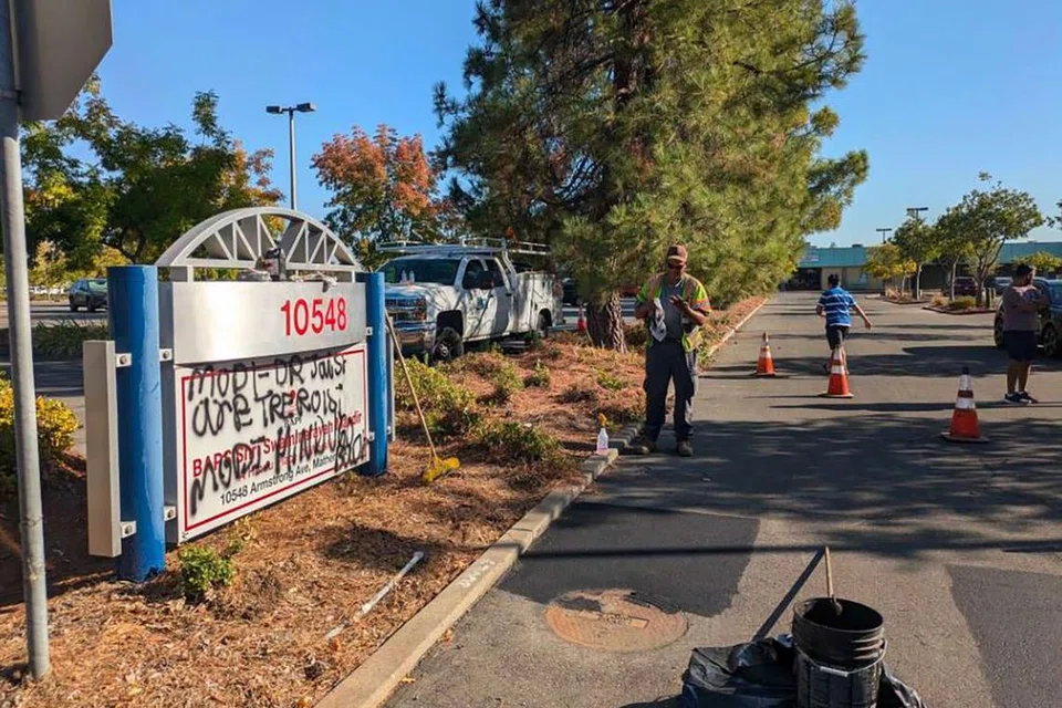 Sacramento Police said they were investigating a “vandalism being classified as a hate crime”.
