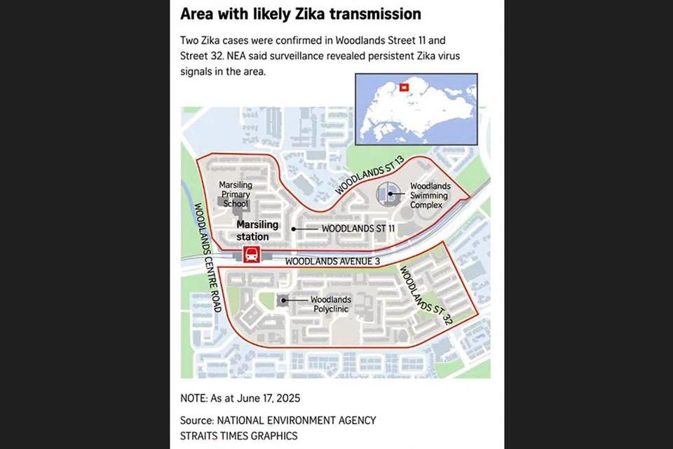 Two Zika cases have been confirmed in Woodlands Street 11 and Street 32, said the National Environment Agency (NEA) in conjunction with the Communicable Diseases Agency (CDA) in a Facebook post on June 19.