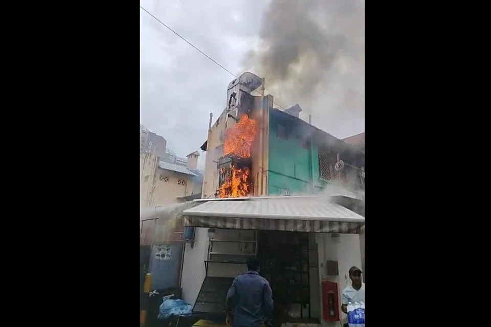 In the video, as the chimney at the rear of the shophouse was ablaze, some workers could be seen rushing out carrying items, while uniformed officers were seen entering the premises with fire extinguishers.