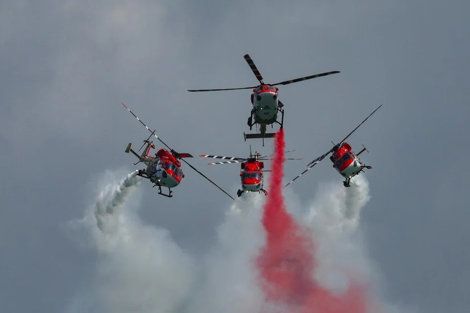 The Indian Air Force’s celebrated Sarang Helicopter Display Team returned to Singapore’s skies on Feb 5, delivering a high-energy aerial performance at the Singapore Airshow 2026.
