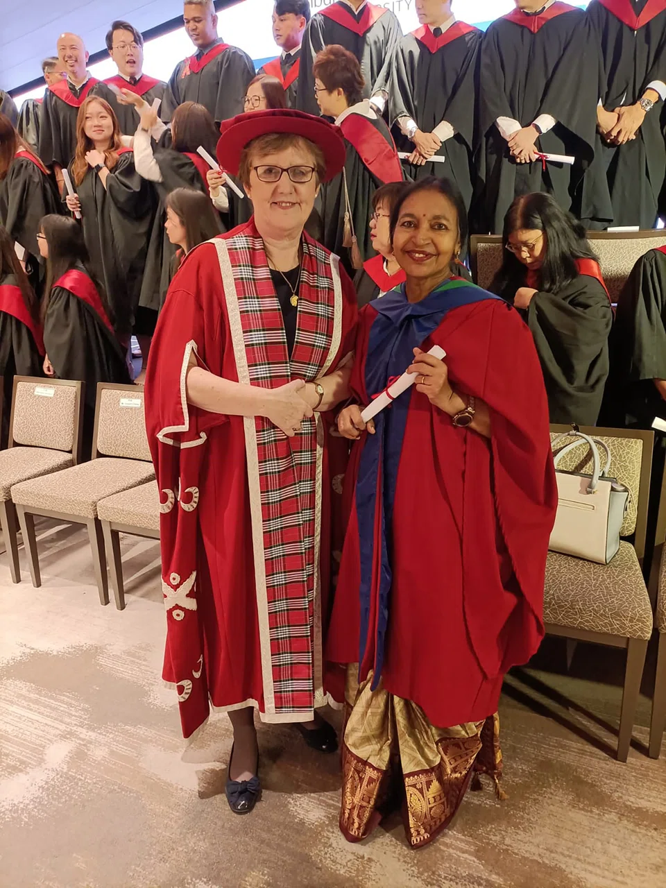 They had flown from Brisbane, Australia, to Singapore to witness their 72-year-old “supermum” graduate, with a Doctorate of Business Administration from the Edinburgh Napier University based in Scotland.