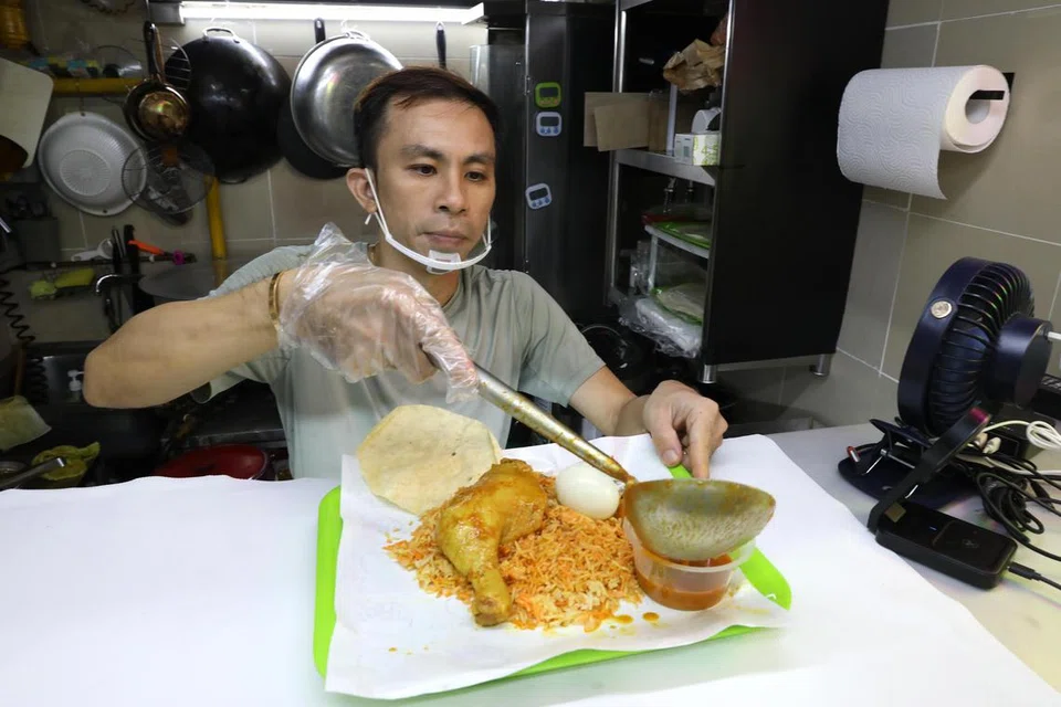 Civil servant Alex Goh, who was at the stall with his friends Cheer Ho and Fredrik Wong, said he loved the briyani “because the chicken is so tender”. He added: “The curry is also nice as it is not overly spicy, the portion is generous, and we get a lot of pappadums.”