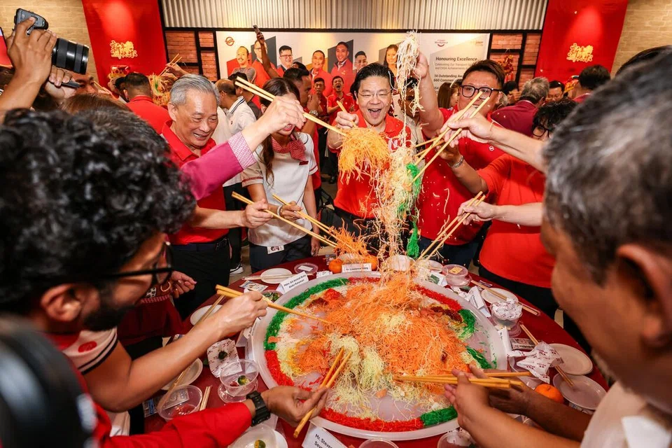 He ended his visit with a mass lo hei (tossing of yusheng) with around 70 workers.