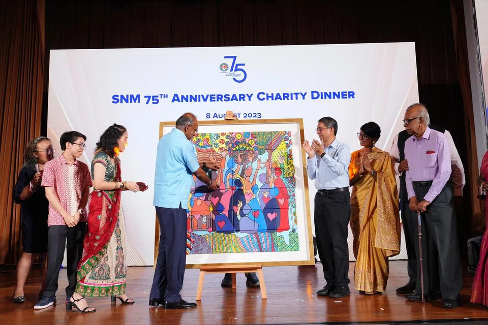 Home Affairs and Law Minister K. Shanmugam unveiled a mural at the Sree Narayana Mission (SNM) charity dinner on Aug 8.