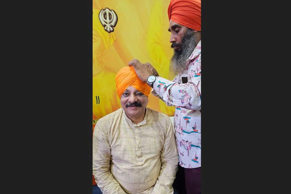 I was then asked to sit straight by Sukhwinder Singh, who had come all the way from the Golden Temple in Amritsar, as he went about tying the cloth around my head.